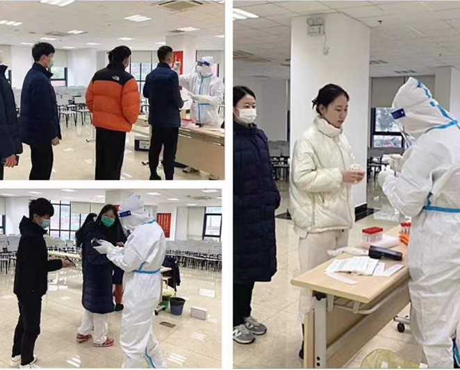 因为疫情,学院决定提前放寒假,2022年元旦后学生们的课程纷纷接近尾声,开启期末考试模式。寒假在即,为了方便我学院外省市同学顺利搭上返乡的高铁、飞机,开开心心与家人团聚,学院学生处与后保处保健站携手组织了一次核酸检测采样工作。学生处排摸了学生的需求量,确定了合适的时间段,保健站联系了上海迪安医学检验所有限公司的工作人员,通过多次协调沟通,确定于2022年1月6日及1月7日两天下午12点-16点,在浦东校区北图书馆一楼;1月6日下午14点-15点在徐汇校区学生事务中心一楼,分别为两校区有需要做核酸检测的同学进行核酸采样工作。