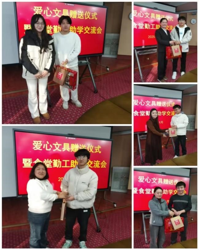 “食堂勤工助学交流会暨爱心文具赠送仪式”在充满温馨与感动的氛围中圆满结束。此次活动的成功举办,不仅体现了学校对贫困学生的关爱和支持,也为学生们提供了一个交流和成长的平台,让他们切实感受到了不仅仅是来自学院的还有来自社会各界的关爱。相信在各方的共同努力下,这些学生能够更加坚定地追逐梦想,在未来的人生道路上绽放出属于自己的光芒,后保处也期待更多的爱心企业和人士加入到关爱贫困学生、支持教育事业的队伍中来,为培养祖国的未来贡献力量。