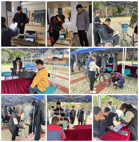 在浦东校区--生活园区北广场和徐汇校区--9号楼连廊下,物业服务小分队免费为师生提供配钥匙、打印复印、衣物挂烫、衣服缝补、自行车修理、爱心理发(浦东校区)等服务项目,他们手持工具俯身忙碌的身影,成为春日校园最温馨的风景线。维修师傅们耐心为师生修理台灯、电风扇、充电器等物品,并现场讲解一些设备和用具的日常维护技巧,赢得了同学们的高度好评。一名学生感慨:“没想到物业师傅连手机贴膜都会!这些小服务特别贴心!” 此外,物业还开设“生活服务角”为师生提供缝补衣物、安装晾衣绳、自行车打气等“微服务”。据统计,活动当天共解决师生生活问题百余件,收到服务建议10余条;为有需求的师生提供了极大的便利。