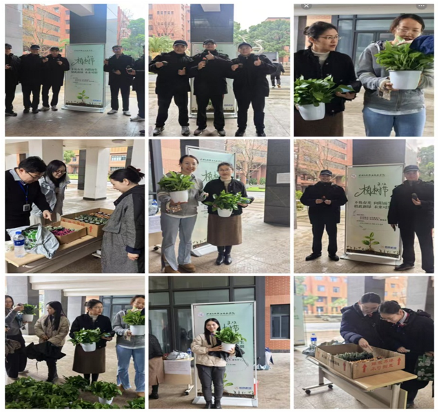 师生参与,共绘绿色画卷。3月12日在徐汇校区,春光明媚,师生员工热情高涨。在后保处指导下,物业服务中心提前布置了活动场地(8号楼北门),准备了多肉、绿萝等适宜本地生长的树苗。师生响应积极,现场教师和学生们一起动手栽种各类绿植,在物业专业园艺师的指导下,其乐融融,展现出春季校园内一派生机盎然的景象。