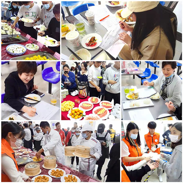 各色美味佳肴登场后,现场阵阵飘香,欢声笑语此起彼伏,比赛现场也吸引了众多学生到场拍照留念,师生评委们现场品尝美食,认真评分,师生代表评委们根据各代表队制作的参赛作品的制作工艺、厨艺技能、烹饪方法、口味色彩、造型美观、整体协调等方面进行评判投票,比赛现场气氛热烈,上演了味蕾与视觉的双重盛宴。