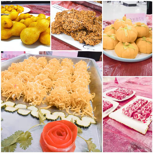本次比赛按照第四届上海高校食堂厨艺技能大赛的标准和赛制进行,分白案和红案两大项目,其中白案比赛指定品种为鲜肉包、菜包及2个自选创新点心;红案比赛指定品种为“青椒土豆丝”和2个自选创新菜肴;每家餐饮公司打造人气美食2种。来自徐汇、浦东两校区3家餐饮公司,上海汇美堂餐饮管理有限公司、上海学校餐饮服务有限公司、上海颐谷餐饮管理有限公司的多名点心师、厨师参加了比赛。参赛选手们严格按照比赛规程和操作规范,全身心投入,匠心独具,以娴熟的刀工及独特的创新,纷纷亮出自己的绝活,展示自己的精湛厨艺。活动现场志愿者学生们也积极参与筹备活动中,签到、测体温、摆盘、分发评分表、统计选票……他们忙碌的身影也会大赛活动增添了靓丽的色彩。