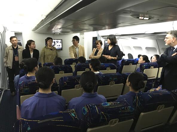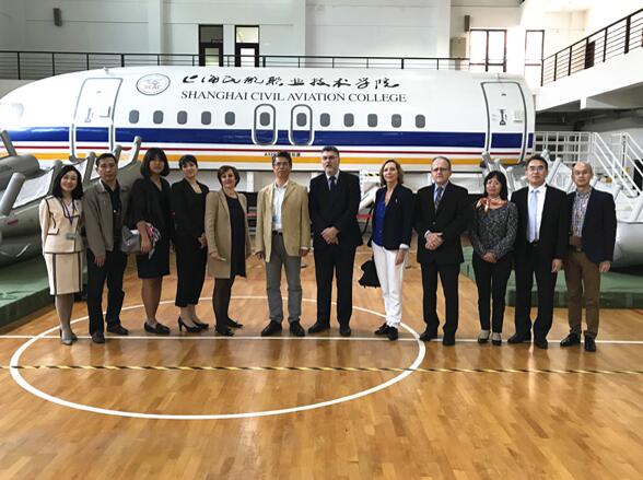 会谈后,杨征副院长等陪同代表团一行参观了航空服务开放实训中心、机务工程训练中心,代表团对我校的宜人环境和先进的实习实训条件表示肯定与赞赏。