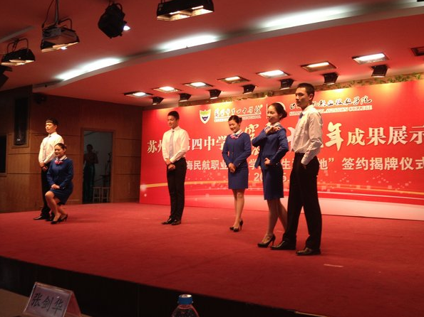 为充分利用苏州市第四中学校的教育特色和空中乘务专业的优质生源,积极发挥我院空中乘务专业的品牌效应和教学优势,实现大学与中学的资源共享,优势互补,强强合作,也为我院空中乘务品牌专业选拔更多更好的空中乘务人才储备优质生源,5月9日下午,院长于再、副院长杨征、市场部主任倪轶群等一行三人赴苏州市第四中学校进行了空乘专业生源基地的签约和揭牌仪式,这也是我院建立的第一个生源基地。