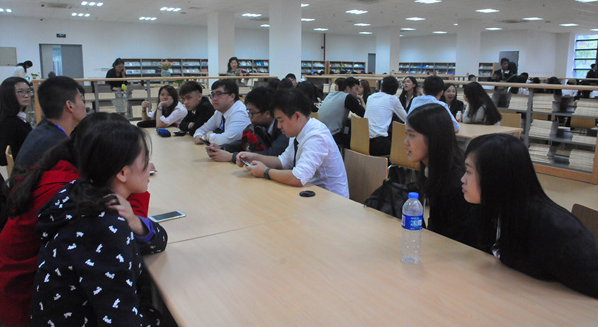 随后,访问团转移至学院图书馆,沪港学生分成8组进行面对面的交流讨论。双方从学习方式、生活多样性等方面深入交流探讨,增强了相互的文化认同感以及文化包容力,也增强了沪港两地学子的感情。访问中,双方教师也进行了友好交流,共同讨论了两地教师教学方式、实践教学、学生学习方式的不同,加深了对彼此差异与共同点的了解。访问交流活动在友好和谐的氛围中圆满结束