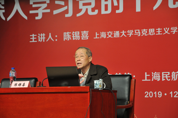 12月26日下午,学院举办学习贯彻党的十九届四中全会精神专题辅导报告会。上海市习近平新时代中国特色社会主义思想研究中心研究员、上海交通大学马克思主义学院马克思主义理论研究中心主任、讲席教授陈锡喜应邀作辅导报告。院长、党委副书记胡亚明主持会议,章恒龙副院长以及全校教职员工、学生代表400余人参加报告会。
