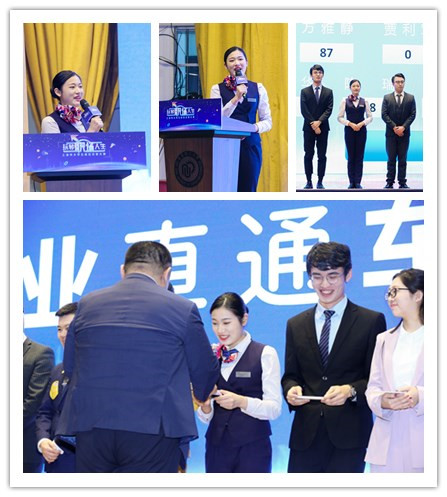 12月8日,决赛正式打响。面对众多研究生、本科生,崔佳男同学充分发挥和展现自己的专业所长,以新颖独特的民航乘务标准介绍自己的求职目标,将自己的专业知识、个人所长与求职目标密切贴合,更好地展现了自己的扎实功底和职业理想,最终获得在场企业代表颁发的免面试offer,将有机会直接入企业实习。