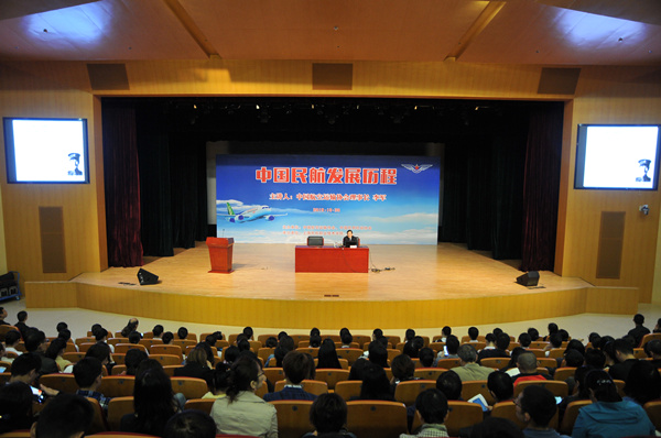 辅导报告开始后,李军理事长以时间为纲,从旧中国航空艰难起步、新中国建立前期民航艰苦创业、改革开放以来民航持续快速发展三个方面讲解中国民用航空发展的不平凡历程。通过讲解,师生们详细了解了“两航”起义的始末,更加清楚地认识到“两航”起义在新中国民航事业发展中的重要作用。“两航”起义是中国共产党领导的一次伟大的爱国主义壮举,具有重要的历史意义。“两航”起义在军事上切断了国民党军队西南空中运输,有力配合了人民解放军解放大西南,加速了解放全国大陆的进程;在政治上带动了香港及九龙的国民党资源委员会、招商局、中国银行等27个机构相继起义,极大地撼动了国民党反动政权;在经济上支持了新中国建设,特别是为新中国民航事业奠定了物质、技术和人才基础,成为新中国民航事业的起点。听着理事长讲述周恩来总理与民航的不解之缘、对民航的高度关心,看到周总理1957年在民航局《关于中缅航线通航一周年的总结报告》上批示“保证安全第一,改善服务工作,争取飞行正常”的图片,大家都感觉格外亲切,备受鼓舞。这三句话科学概况了民航工作的特点,至今仍然具有很强的指导意义,是民航工作始终遵循的根本原则。