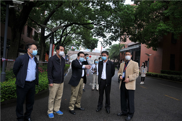 一到校,沈炜书记一行就按照考生进场流程开始了检查工作。学院领导介绍了我院疫情防控应急预案、发热考场布置等此次考试相关工作的情况。沈炜书记边检查边询问,对学院将考生的身体健康和生命安全放在第一位置表示肯定,对学院前期做了大量周密细致的准备工作给予赞赏。