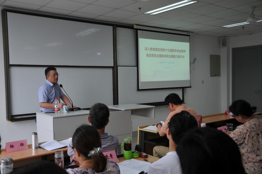 开班仪式后,上海财经大学党委委员、博士生导师应望江教授作《深入贯彻落实党的十九届四中全会精神 推进高校治理体系和治理能力现代化》的专题讲座。他阐述了十九届四中全会精神要点,并深入浅出地介绍了高校治理的相关理论。在对美英法德日等国家高校治理进行了比较后,他重点讲解了中国特色现代大学制度的形成和特征,以及推进高校治理体系与治理能力现代化的一些思考。通过课程帮助培训班学员从理论高度更加全面理解高校治理体系,认真思考学院发展改革实践,提高治理水平。