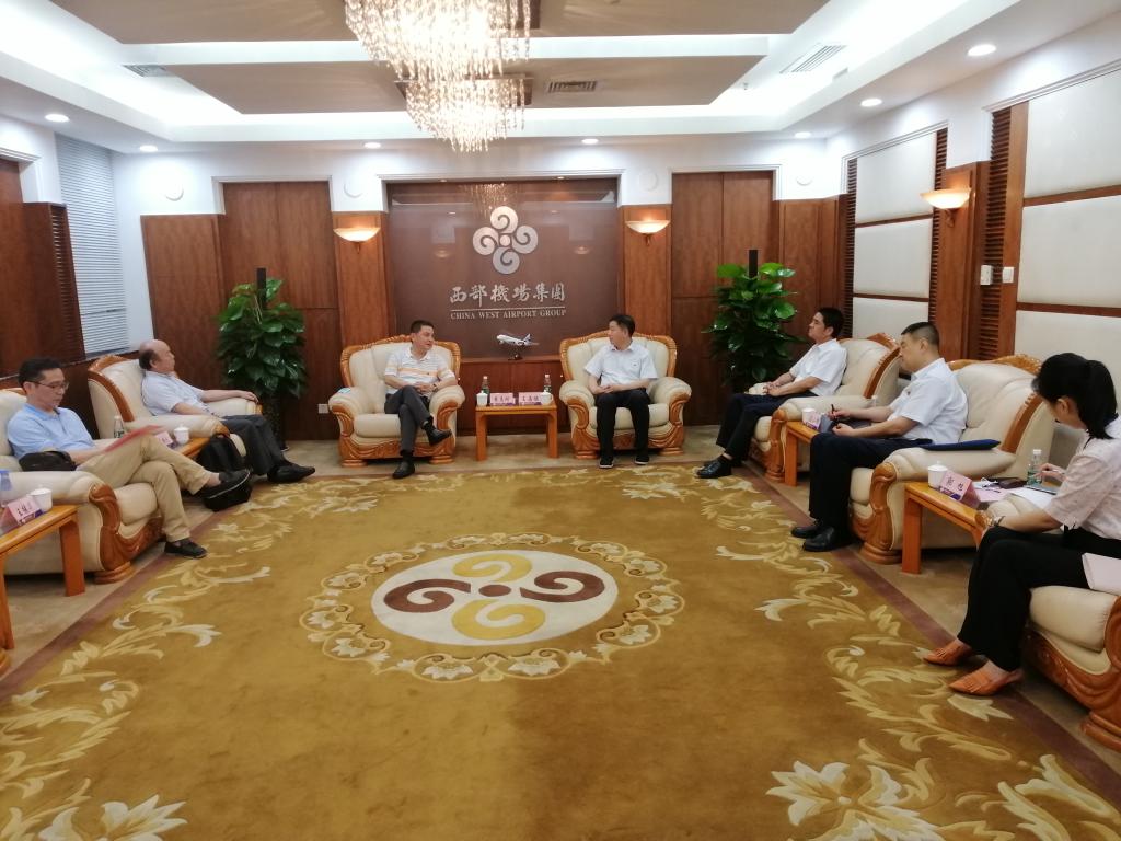 为做好六稳六保工作,进一步落实民航保就业工作专题电视电话会议精神,为西部大开发提供有力的民航教育和人才服务保障,8月3日,学院党委书记戴志刚、副院长章恒龙一行,前往西部机场集团开展调研,并与西部机场集团党委书记、董事长王海鹏,党委常委、工会主席汤小锋举行座谈。双方就加强校企战略合作,进一步加快人才培养、推动教师资源共享、开展职工继续教育等方面进行深入交流。