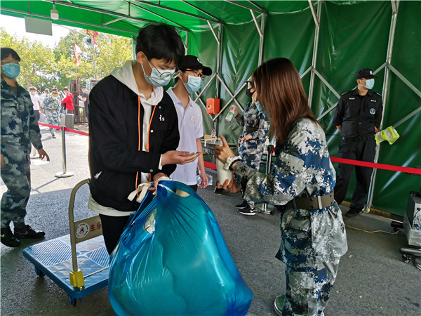 在疫情防控条件要求下,学院学工处、后保处、财务处等多部门认真筹划,精心部署,扎实做好各项迎新工作,迎新现场平稳有序。10月10日报到当日,学院党委书记戴志刚沿着报到路线进行了巡视走访。在生活园区东门身份验证测温区,戴书记详细询问了相关工作开展情况。副院长章恒龙、杨征、孙暄以及学生工作处、各系部、相关部门负责人向现场工作人员和志愿者表示慰问,并与新生及家长亲切交谈,了解他们对于学校的期望和意见。章副院长叮嘱相关部门负责人,要严格落实各项防控措施,保障师生身体健康和生命安全,掌握新生的思想动态和心理状况,引导学生早日适应大学生活。同时提出要求,要把各项工作做细做实,做到学生心里,给在特殊时期入学的2020级新生留下一分温暖而难忘的记忆。