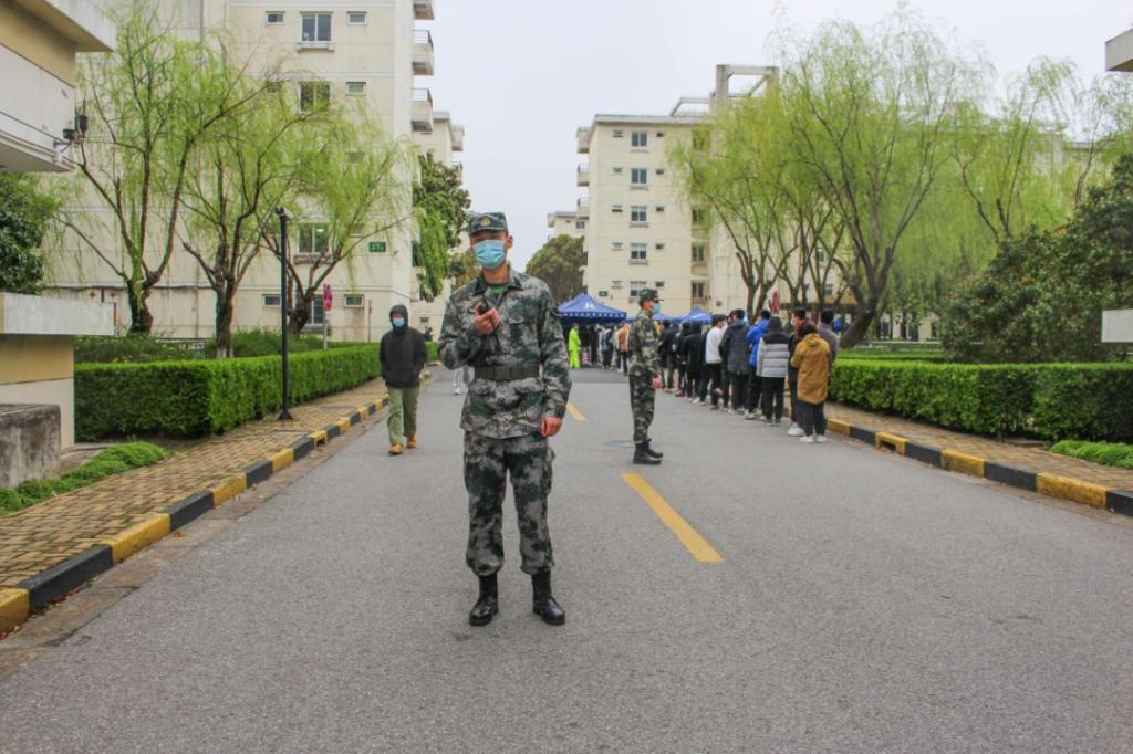 他们响应迅速,为满足校内核酸采集工作需求,在短短的半个小时之内就组成一支由几十名退伍军人组成的突击队;他们勇于担当,从园区巡逻、搬运物资器材、核酸检测保障、食堂执勤,到提醒同学们的规范戴口罩,倡导同学们杜绝外卖减少网购,了解同学们的需求和困难……总之哪里有需要,哪里就有他们的身影;他们无私奉献,不分昼夜、不论寒风骤雨,都坚守在自己的“责任田”里。他们坚毅的眼神、挺拔的身躯,成为校园内的一道风景线。