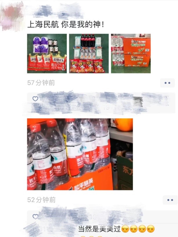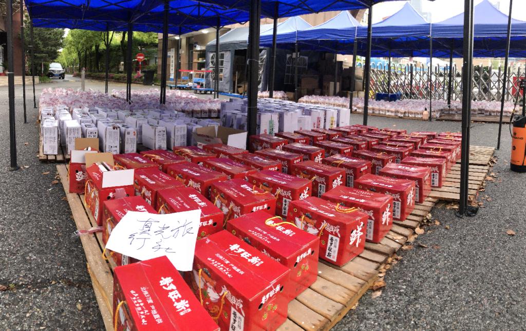 4月24日,吉祥航空向学院徐汇校区捐赠了3000余份水果、自热米饭等食品,春秋航空捐赠了1000余份草莓、牛奶、八宝粥等食品。