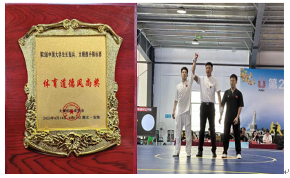 我院太极推手队员们敢打敢拼、奋勇争先、文明竞赛的精神得到了大赛组委会的高度认可,被评为“体育道德风尚奖”;带队老师刘志兰荣获“优秀教练员”的光荣称号;参赛选手谢鸿获“优秀运动员”的荣誉称号。
