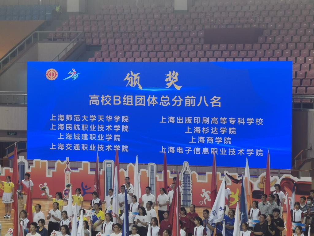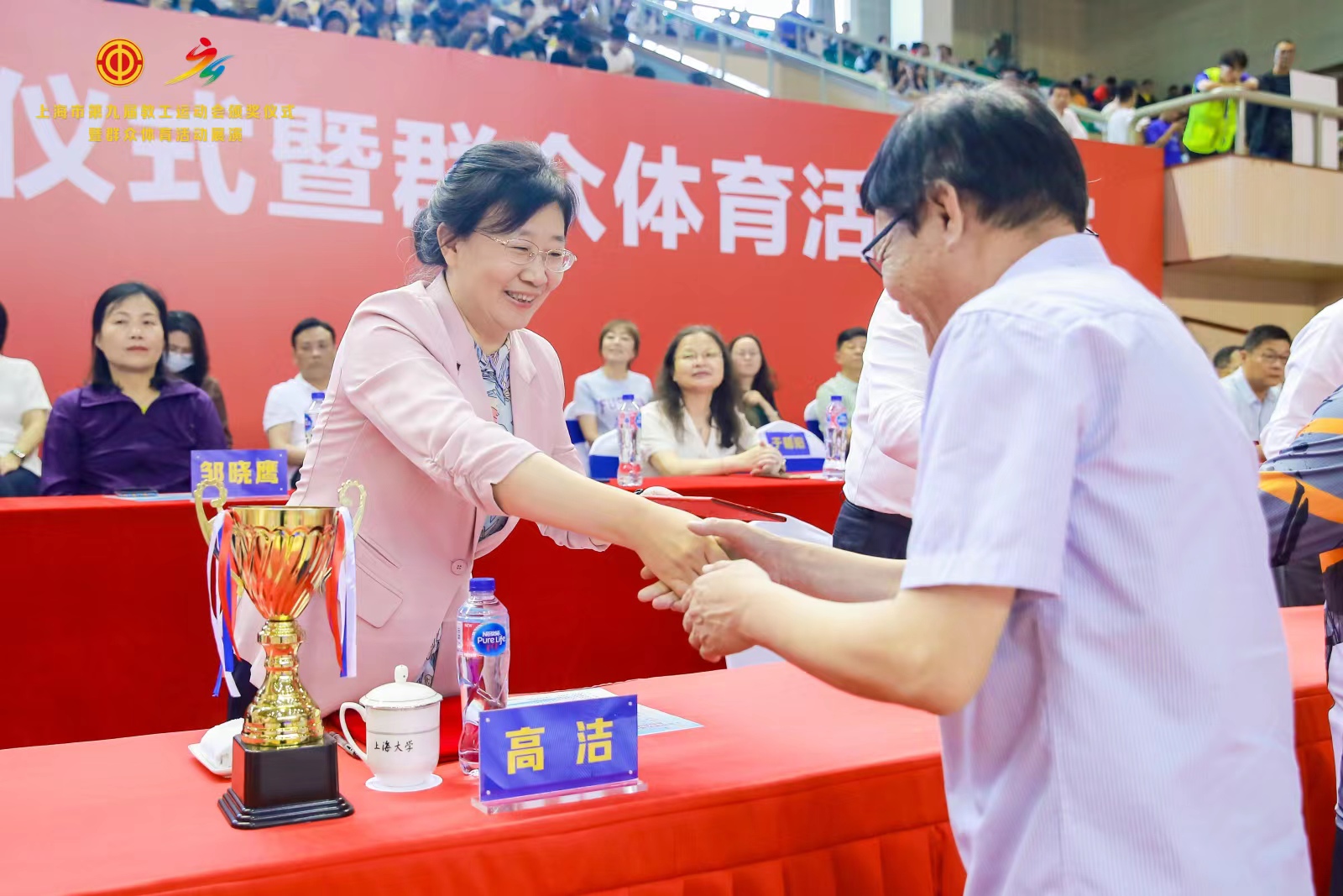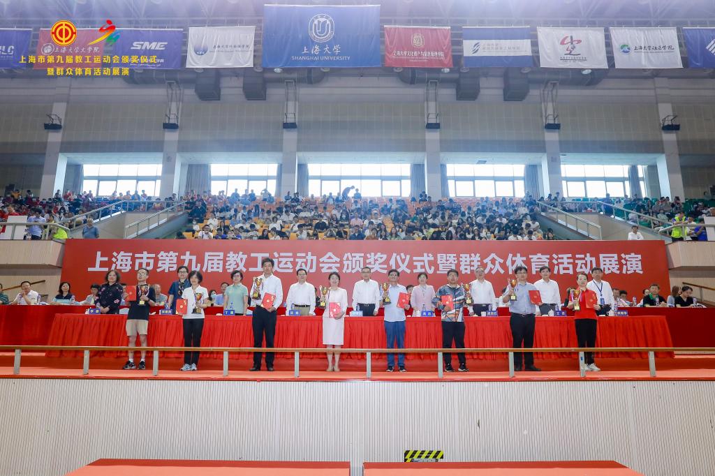 6月18日,由上海市教卫工作党委、上海市教委、上海市教育工会主办、上海大学承办的上海市第九届教工运动会颁奖仪式暨群众体育活动展演在上海大学宝山校区隆重举行。我院由党办主任顾青、工会办副主任陈钟惠两位老师带队,钱佳琦等15名教职工一同参加此次闭幕活动。