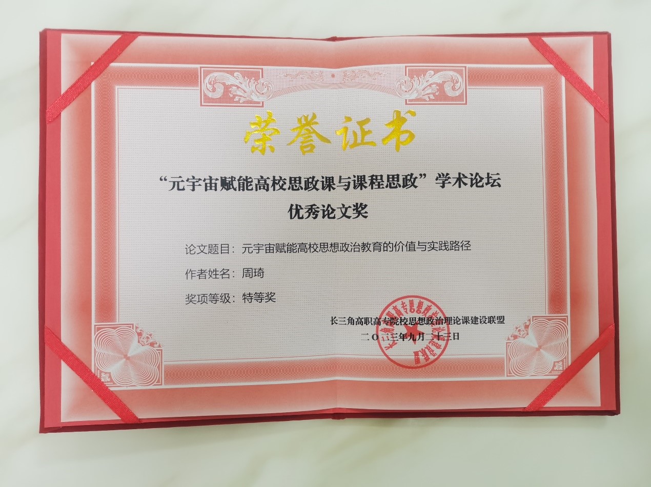 为学习贯彻落实党的二十大精神、推动思想政治工作传统优势与信息技术深度融合,借助“元宇宙”等新技术、新思维与新方法推动高校思政课与课程思政课改革创新,马克思主义学院教师周琦基于教学实践进行思考,分析元宇宙为高校思政教育赋能的重要价值和基本原理,通过优化环境、组织活动、完善评价、健全机制等方面提升高校思政教育质量的方法路径,并撰写论文《元宇宙赋能高校思想政治教育的价值和实践路径》。该论文荣获“元宇宙赋能高职思政课与课程思政”学术论坛优秀论文特等奖。