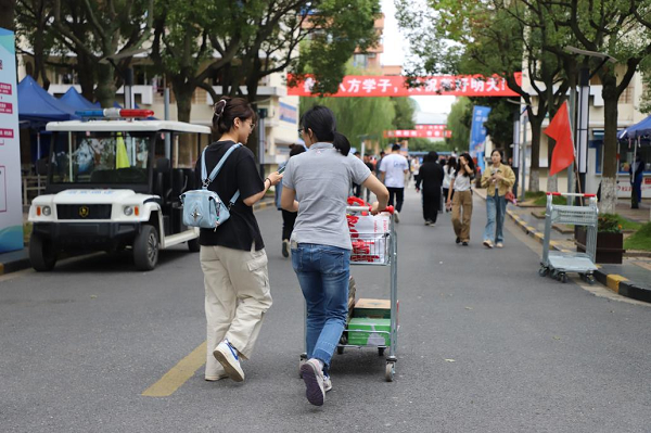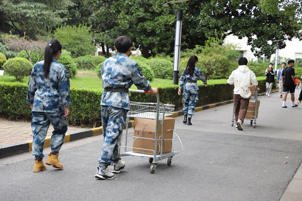 为迎接新生的到来,丰富多彩的迎新工作准备就绪。放眼望去,学院贴心配置了爱心小推车、防晒蓬,学生教导员、学导员、退伍学生齐上阵,帮助新生搬运行李。为方便新生办理入住在浦东校区生活园区东门、南门均设立了新生专用通道。