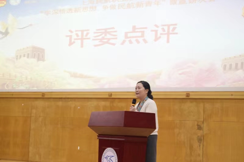 为将习近平新时代中国特色社会主义思想先学一步,学深一层,引导广大青年自发奋进新征程、建功新时代,3月22日下午,由马克思主义学院、团委主办的“学深悟透新思想,争做民航新青年”学生微宣讲决赛在浦东尚智堂隆重举办。活动特邀人事处处长曹维平、公共基础学院党总支书记张莹、马克思主义学院常务副院长柳心欢、纪委监察室副主任李君、学生工作处副处长兼团委书记韩玉锦、民航运输学院师生联合党支部副书记朱川慧担任评委,现场共计400名学生观众参与观摩。