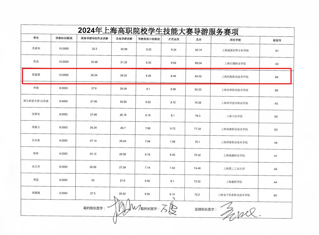 为引领“三教改革”、提高技术技能人才培养质量、发挥技能大赛促进职业教育高质量发展的作用,由上海市教育委员会职业教育处、上海市教育委员会教育技术装备中心主办的2024年上海高职院校学生技能大赛于近日落下帷幕并公布了获奖结果,我院空港管理学院民航运输(航空港管理)专业2232104班邵嘉熠代表学校参加导游服务赛项,以出色的成绩斩获了比赛二等奖。