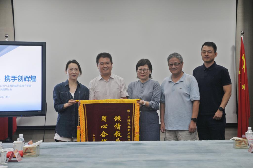 9月14日上午,学院与上海国际机场地面服务有限公司(简称“上海地服公司”)校企合作共建研讨会在徐汇校区1号楼1205会议室举行。会议由民航运输学院召集,上海地服公司党委书记滕莉沁、纪委书记(工会主席)朱鹏、客运服务部副总经理龚新勇等一行9人与会,我院党委书记戴志刚、民航运输学院党总支书记徐岚、民航运输学院副院长陆东以及民航运输学院商务教研室骨干教师等参会。