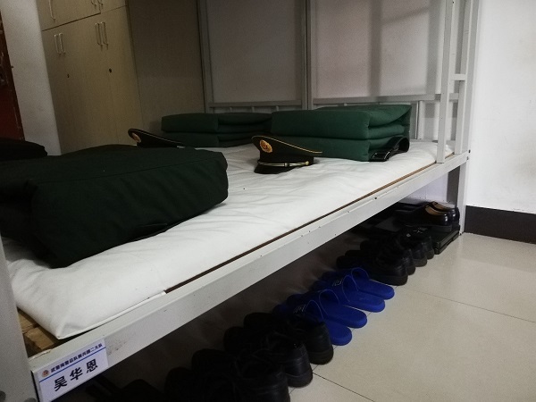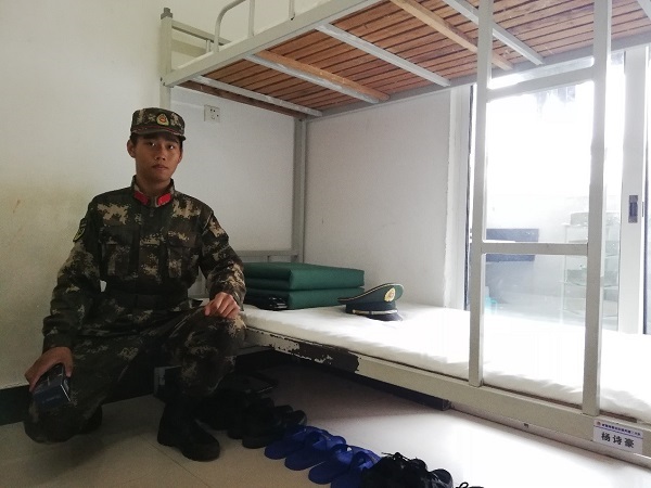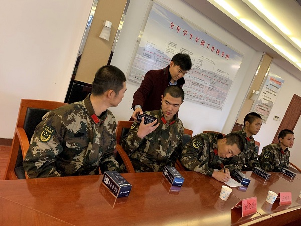在部队指导员的引导下,我院老师参观了同学们的宿舍,并观摩了他们的训练。据指导员介绍,空保专业毕延鑫同学已经是副班长了,由于体能成绩好,训练出色,开始协助班长做管理工作;空港管理系王兆漩内务突出,长期荣获流动红旗,还有杨诗豪及航空制造系吴华恩、傅振杰内务都很优秀。虽然他们被分在不同的班,但都是各班的佼佼者,这也充分体现了我院学生的精神面貌和优良作风。