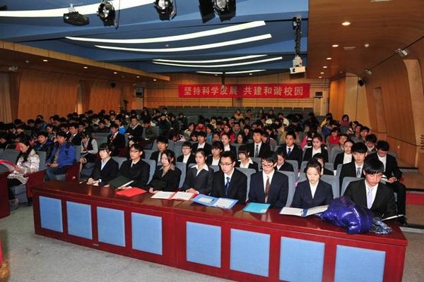 本次会议共有三个议程。首先由杨征副院长讲话,对本次大会作出寄语:希望新的学生会能创新挑战,无论是学习,工作,还是所有组织的活动,都要秉承“没有最好,只是更好”的准则并转换成不断前行的最大动力,为广大同学成长成才提供必要的帮助和服务;始终铭记一切为同学服务,使同学们有一个良好的生活学习环境,令同学们的大学生活过得多姿多彩、有声有色。