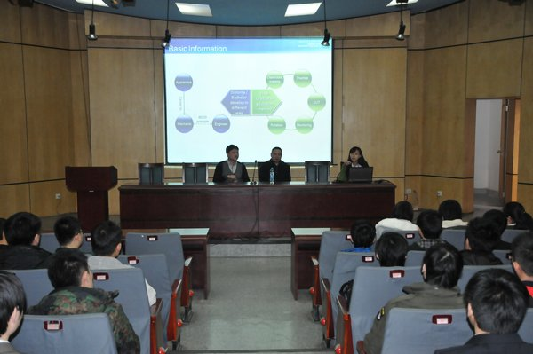 宣讲会后,通过查看102名报名学生的简历,初选了近80名学生参加了书面考试。根据书面考试成绩,确定了46人进行30日的现场面试。在30日的现场面试中,上海波音派出了强大的面试阵营,对这46人从英语能力、专业知识、个人的礼仪礼节、团队协作及处理问题的应变能力进行了全方位的考量,最终确定了三十五名学生成为上海波音第一批“波音班”的学员。