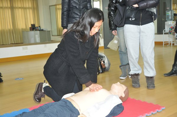 此次培训包括理论和实操两个部分。苏老师讲授了现代救护新概论和伤病员突发伤害的紧急评估,讲解了伤病员突发意外伤害如成人和婴幼儿气道阻塞的救助、发生火灾逃生的自救和互救、一氧化碳中毒现场急救、心跳、呼吸骤停的现场判断及实施现场心肺复苏术等急救技能。苏老师随后在航服实训楼现场急救教室对每位学员进行了模拟人心肺复苏的操作考试,并手把手地纠正了学员们错误操作流程和按压方法。考核合格的学员将获得上海市红十字会颁发的《现场初级急救合格证》。