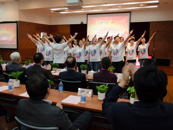 最后,我校青年教工合唱团以一曲《放飞梦想》带领全场嘉宾唱响青春,把此次活动推向了高潮。都说台上一分钟,台下十年功,为了在华东民航青年面前有一个漂亮的亮相,我们合唱团的老师们在演出前的一个多月里,除了周五正常的排练时间外,还利用每天中午的休息时间加班加点,反复锤炼。为了提高合唱团老师的整体水平,指导老师陆益从音阶基础和发声方法开始训练,课课有作业,堂堂有考核,真正做到宽进严出。团长钱佳琦充分利用QQ和微信平台,积极调动广大团员的积极性,交流心得体会,而且每次训练前都多次提醒团员参加。为确保演出的质量,钱佳琦从团员的服装设计到演出的队形编排,都精心筹划,细致入微,确保了当天演出的成功。活动当天,青年合唱团以饱满的精神状态、昂扬的激情和嘹亮的歌声感染了在场的所有领导和观众,博得了满堂喝彩,在唱到高潮片段时,全场观众和着节拍一起击掌应和,最终合唱团以精彩的表现圆满完成了此次演出任务。