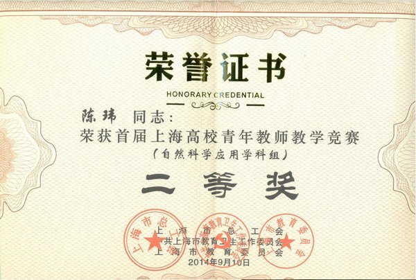 在前不久的上海市首届青年教师教学竞赛上,我院教师刘珏、陈玮脱颖而出,分别获得了上海市首届青年教师教学竞赛人文社会科学组和自然科学应用学科组的二等奖,为学院争得了荣誉。