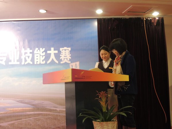 自我校成功组织两届全国民航机场候机楼服务岗位职业技能大赛后,民航企业纷纷效仿以技能大赛为契机,提升公司整体服务水平。2014年12月22日,辽宁机场集团举办客运服务大赛,我校再次受邀协助组织大赛,民航经管系落实承办具体事宜。大赛模拟服务环境,以服务实操进行角逐,团委汪宁和经管系黄颖芬出演旅客,经管系商务教研室张辉、空乘教研室徐海燕和督导办公室高倩担任评委,分别负责民航专业知识、服务技能和语言措词的评分工作。