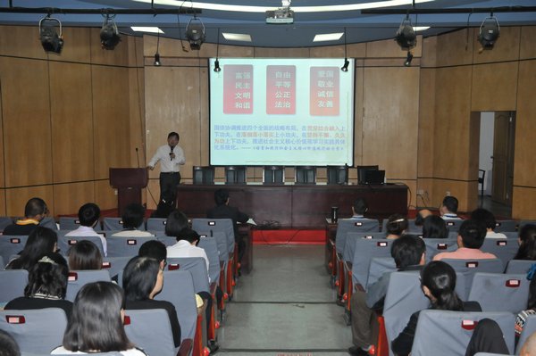 以中华传统文化启示现代智慧,以世界文明经典解析现代观念。5月15日下午,一场名为《传统文化与社会主义核心价值观》的讲座在学院报告厅举行。为深入学习习近平总书记系列重要讲话精神,学院党办邀请中共上海市委讲师团成员、上海市委党校陈方刘副教授来校做专题讲座,获得了全体教职工的积极响应。报告会现场,学院领导和全体教职员工专心聆听,大家沉浸于陈方刘教授的渊博知识和丰富多彩的故事之中,报告厅中不时响起笑声和呼应,整场活动取得了较好的宣讲效果。