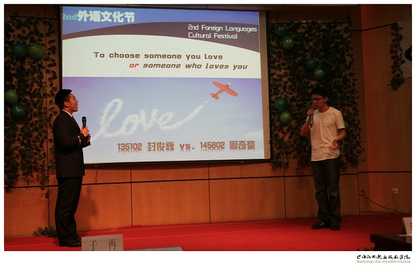 从5月12日游园会开幕式开始,历经一个多月的各项赛事角逐和近两周的闭幕式筹备工作,6月16日下午,我院第二届外语文化节在学院报告厅圆满落幕。于再院长、孙暄副院长、基础部主任曾晓燕、校团委书记李君莅临现场,观摩了此次闭幕式。外语教研室部分老师和团委汪宁老师担任了口语和歌曲终极PK的评委。14年级各班学习委员和学生代表参与了观摩。获得本届外语文化节“最佳组织奖”的145601班担任了现场的大众评审团工作。