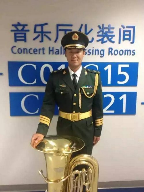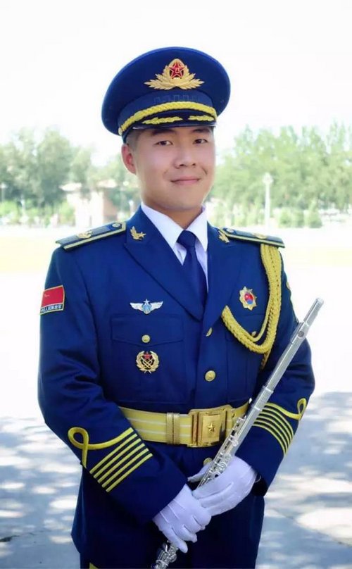 这两位是民航中专10届学生郑逸磊和刘益。郑逸磊曾是民航上海中专管乐团07级大号声部首席兼声部长,刘益曾是民航上海中专管乐团学生副队长、长笛声部首席兼声部长,他们毕业后进入武警上海总队政治部文工团担任演奏员。今年四月,他们脱颖而出,与武警上海总队军乐队的其他六名官兵一起被选入中国人民解放军联合军乐团,成为阅兵式上武警代表队的一员,分别司职大号、小号、单簧管、打击乐、长笛、萨克斯等乐器。他们也是驻沪部队唯一一支直接参加阅兵式的代表队。
