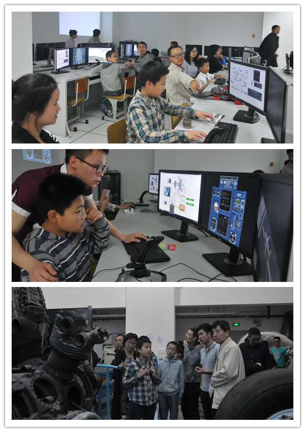 活动伊始,郭永强老师首先通过飞机维修模拟器对飞机的基本原理以及机务所做的日常工作进行了基本介绍,然后借助高度仿真的模拟软件,演示了如何通过查询手册、参考工卡来完成飞机起飞前的准备工作,并且一步一步地演示了APU和发动机的启动过程。之后,老师让小朋友们在模拟器上自己完成实验。在老师和志愿者的帮助下,小朋友们尝试着自己操纵飞机飞上蓝天。3D模拟的真实现场感,驾驶舱内的七块控制面板,操纵起飞的小心翼翼,这一切都让小朋友们兴奋不已,不时发出“原来开飞机这么复杂啊”的感叹。陪伴孩子前来参加机务体验的多数家庭都启动了全家总动员的模式,爸爸们更为兴奋,他们笑言是沾了小朋友的光才有机会“开飞机”。