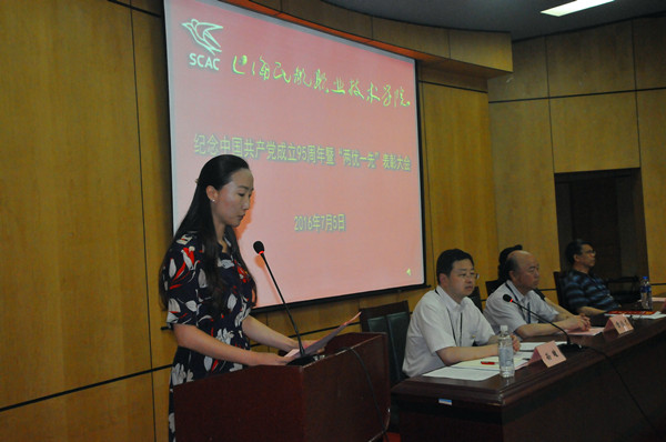 伴随着庄严的国歌,大会正式开始。章恒龙副院长宣读了《关于荣获民航局、上海市各类先进集体和先进个人的通报》。为展示学院基层党支部和广大党员贯彻全面从严治党要求,落实中央、民航局党组和学院党委各项工作部署等方面取得的明显成效和生动事迹,激励各级党组织和广大党员在坚持贯彻实施民航强国战略、加快推进民航现代职业教育体系建设、推动学院教育教学中积极进取、建功立业,经院党委研究决定,学生工作党支部为民航先进基层党组织推荐表彰单位,宓肖燕同志为民航优秀共产党员推荐表彰人选,顾青同志为民航优秀党务工作者推荐人选,季玲玲同志为上海市徐汇区优秀共产党员推荐表彰人选,丁磊同志为2016年“上海市育才奖”推荐人选。