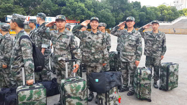 新兵代表表达了对学院的感激之情以及对军营生活的憧憬与希望,并表示到了部队会努力锻炼、争取立功回报母校。