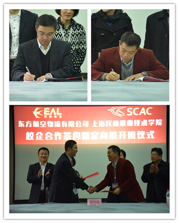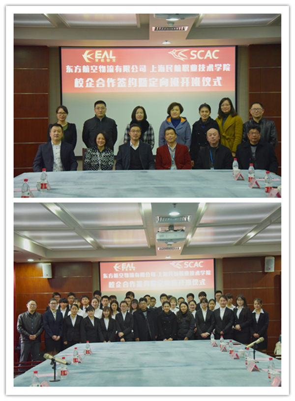 1月4日下午,学院与东方航空物流有限公司(以下简称“东航物流公司”)2015级民航安全技术管理专业定向班合作协议签署暨开班仪式在综合楼1205会议室隆重举行。双方本着人才共享、优势互补、服务于人、全面发展的精神,从15级民航安全技术管理专业学生中选拔出35名学生,组成了定向培养班。