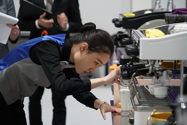 陈亦凡口中的服务细节,在常人理解中近乎苛刻。她举例说,制作两杯咖啡,拉花必须一模一样。摆盘时,每套餐具摆放如果有一点细节不同,分就没有了。另外,英语要非常流畅,甚至要能听懂各种英文“方言”。