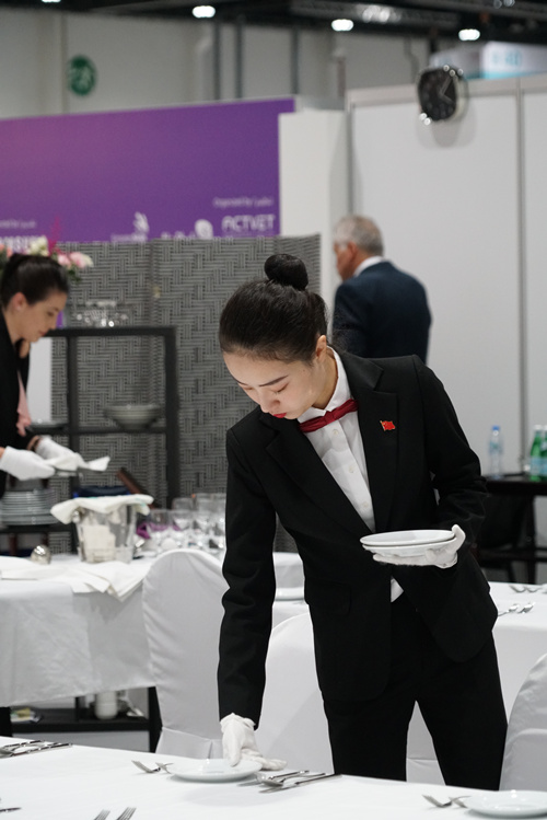 对中国选手来说,世界技能大赛上的餐厅服务项目,无论是语言还是西餐文化,均不占优势,选手需要在陌生的领域里面重重突围。