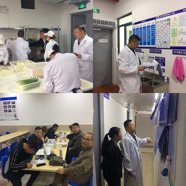 上午8:30,专家组一行前往第一食堂进行现场检查和评估工作,二人一组根据“6T”评估的十项指标分别对个人卫生、“6T”知识、标识图标、视觉管理、地面干燥、规范存放、安全卫生、清洗消毒、食品质量、台账记录进行了严格、仔细、全面的检查和评估。在2个小时检查、评估过程中,专家组成员严格查看每一个细节,通过看资料、看标识、看操作、问知识、问管理、查细节等手段进行检查和评价。