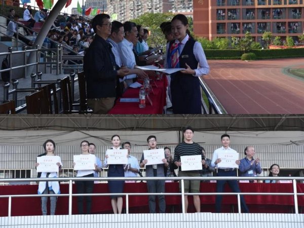 下午四点,全部比赛项目顺利结束,运动会闭幕式在操场举行。杨征副院长宣读了入场式获奖名单,男、女组接力赛前六名名单和男女组团体总分前六名名单,与会领导向获得团体奖的班级颁发了奖状。