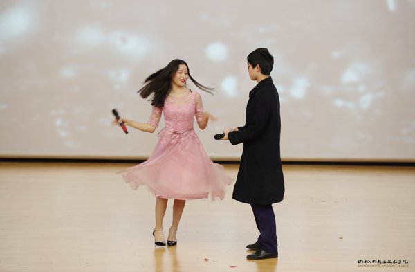 学院领导杨征副院长、孙暄副院长、学生工作处处长倪轶群和各系部的相关领导应邀参加。团委钱佳琦老师和外语教研室的老师担任现场歌曲终极PK和口语及词汇比赛的评委,整台闭幕式由教研室主任宓肖燕老师担任总导演,持续近两小时。姜明、刘珏老师和两名学生代表主持了此次闭幕式。