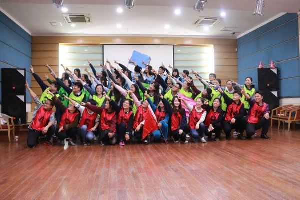 晚上,53名老师齐聚一堂,进行了以室内团队凝聚力为主题的素质拓展。素质拓展伊始,教练让学员们通过热身活动打破相互之间的陌生感,然后通过趣味分组,让小组所有成员蒙眼把手上绳子的绳结打开并摆成最大的正方形。在任务中,学员们认识到了沟通交流的重要性,明白了有时候倾听比急切表达更能快速地解决问题。素质拓展训练过程中学员们从认识到不认识,从不熟悉到形成最大的团队凝聚力,明白了团队的力量才是最大的合力。