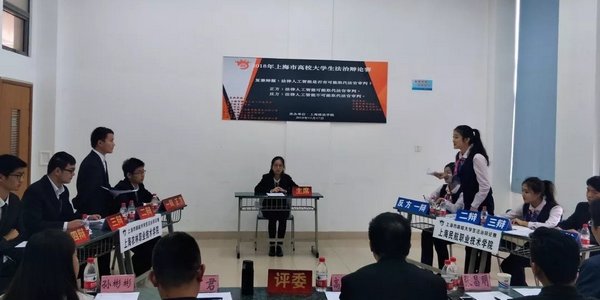 2018年11月17日,我校法治辩论队在上海政法学院复赛中与上海农林职业技术学院就“法律人工智能是否有可能取代法官审判”争夺八强名额,最终我校由1731102谢良永、1721103田圆、1721106 张雪、蒋云琪四位同学组成的辩论队凭借完善的立论、相对成熟的辩论技巧和顽强的抗压能力成功战胜对手,取得与上海市本科院校较量的机会。