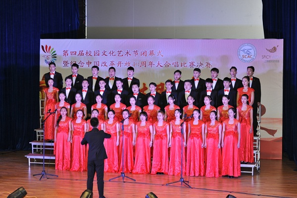 12月14日下午,由学院学生工作处、团委主办,由航空乘务系学工办承办的第四届校园文化艺术节闭幕式暨“拥抱新时代,唱响新征程”大合唱决赛在浦东校区大礼堂隆重上演。学院党委书记戴志刚、学生工作处副处长哈昀、以及此次活动的赞助商上海朝天骄传媒、上海至尊影视文学总监刘浏、行政总监李毫和学院师生共同出席了此次活动。校合唱队指导教师陆益、学生工作处副处长、团委书记周维妍、上海朝天骄传媒、上海至尊影视艺人总监严璞担任了此次大赛的评委。