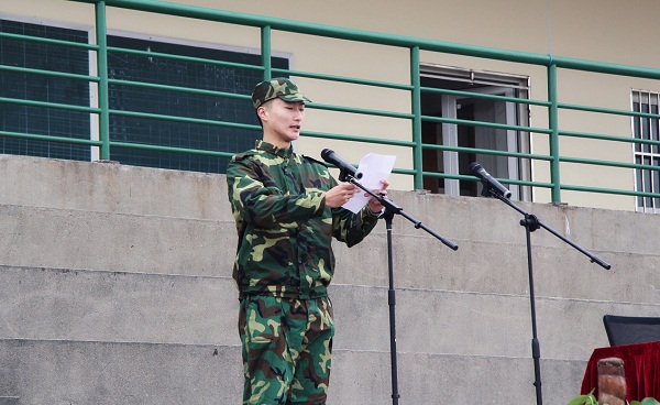 本次2018级的军训活动共有65名教官负责,其中包括3名女教官。2600多名学生头戴军帽,身着迷彩服,以整齐有序的列队、斗志昂扬的精神风貌参加了入营仪式,入营仪式由杜雷雷教官主持。