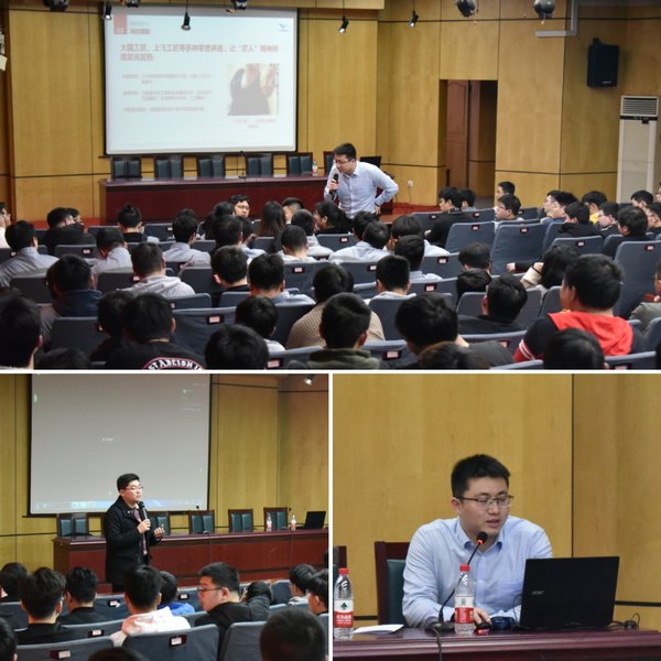 宣讲会正式开始,敖主任首先向同学们介绍了公司的基本情况、发展历程、企业文化及发展前景。公司的核心价值观是安全至上,客户为本,自主创新,合作共赢。公司的目标是把大型客机项目建设成为新时期改革开放的标志性工程和建设创新型国家的标志性工程,并努力发展成为最具效率、最值得信赖的航空总装制造商。敖主任强调,“安全”是乘客对飞行旅途中远胜于“舒适”的首要要求,也正因此,航空制造业有着更高的标准和要求,也面临更严峻的考验和挑战。