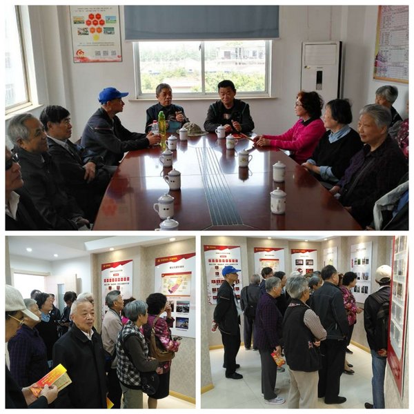 老同志们纷纷发言:走进展区,迎面就是1958年来,历届村党支部书记、村主任带领全村奋斗的光荣事迹,接着就是历年来村优秀党员的先进事迹介绍,展示了该村经济发展中,传统特色生产的传承发展之路等,突显了党的领导和党员的先锋模范作用。他们当中不仅有年轻同志,还有不少老同志,是什么使他们能够在新农村的建设中,始终保持共产党员的光荣形象、发挥先锋模范作用的呢?支部党员们感慨,只有牢记共产党员的光荣称号,无论何时何地,多大年龄都有发光发热的地方,都是可以发挥先锋模范作用的。走出展区,走廊、楼梯旁的墙上,挂满了社会主义核心价值观、中华传统文化和廉政文化等的宣传画,给人以形象化的教育。